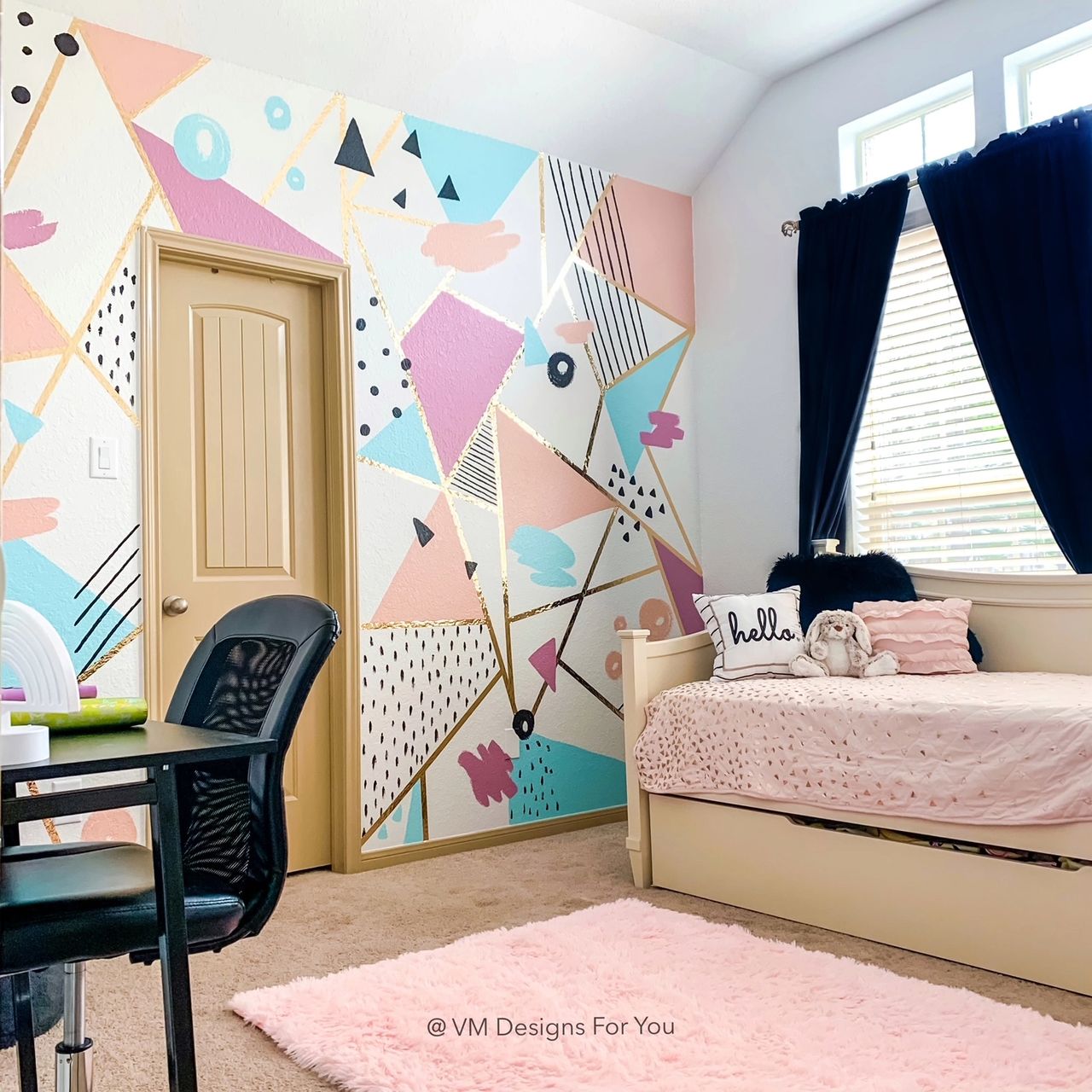 Home Decor Geometric Accent Painted Wall Girl S Room Love Maegan from lovemaegan.com A monochromatic accent wall will have a subtle effect in a bedroom. An accent wall doesn't have to be a vivid color. November 29, 2018 at 8:12 am. It was temporary, peel and stick. Accent wall may differ in color, texture, pattern, material. Or consider painting one wall with bold stripes, and the rest of the room a soothing neutral to compliment the colors she chooses. Primary bedroom with a pastel pink accent wall lined with white wall art pieces mounted above the gray bed. We used dark teal on one wall and a neutral color on the other walls.